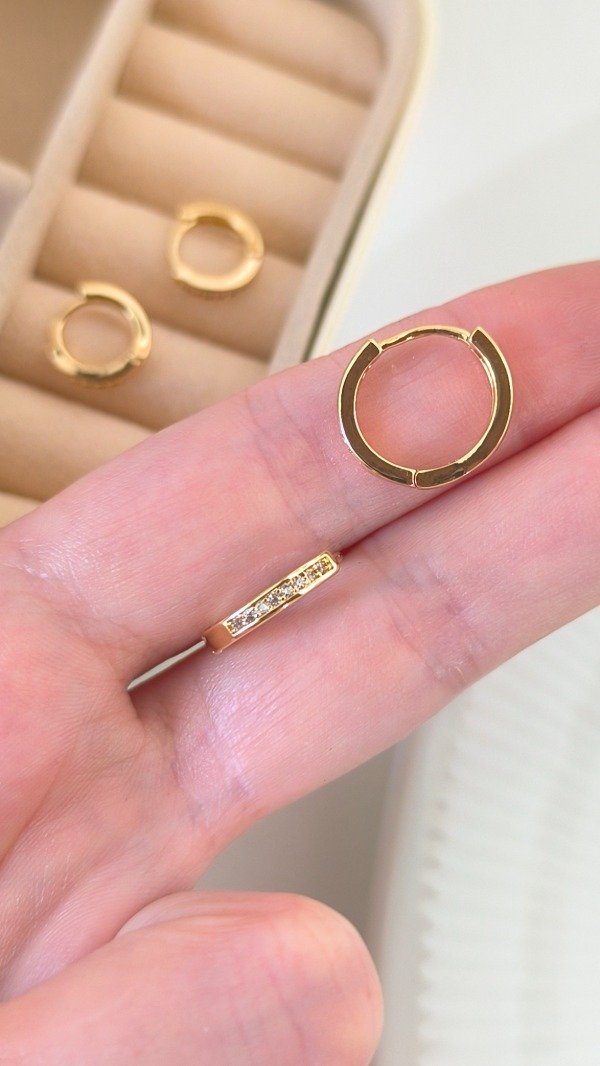 Argollas en Acero Dorado con strass blancos , vienen en dos tamaños diferentes!