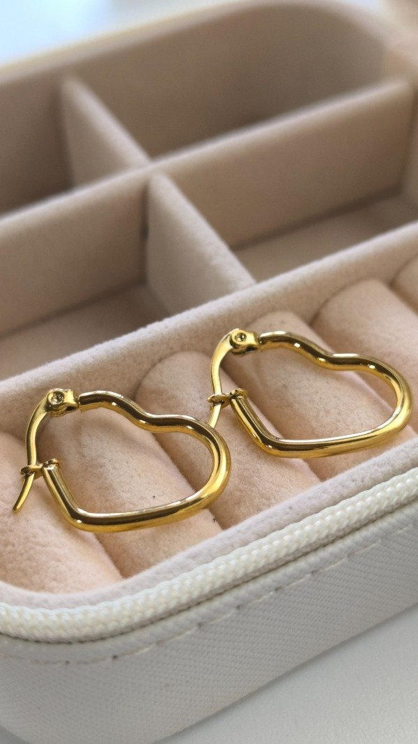 Argollas Diseño Corazón en Acero Dorado 18 mm 🤍