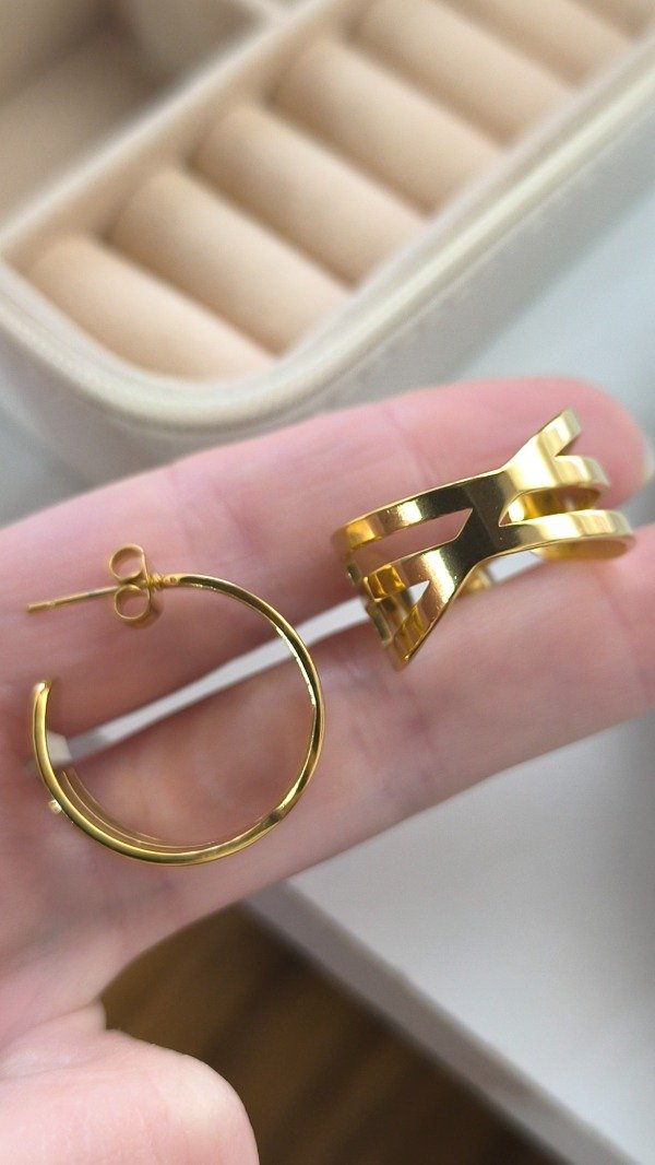 Argollas Diseño en Acero Dorado ideales para una ocasión especial, resalta tu look de noche ✨