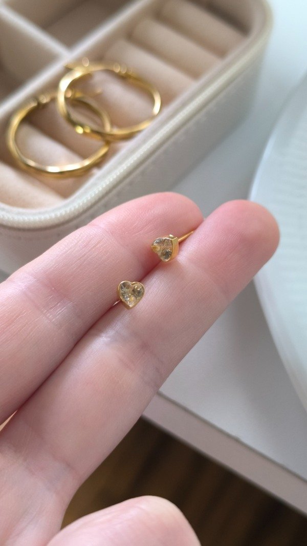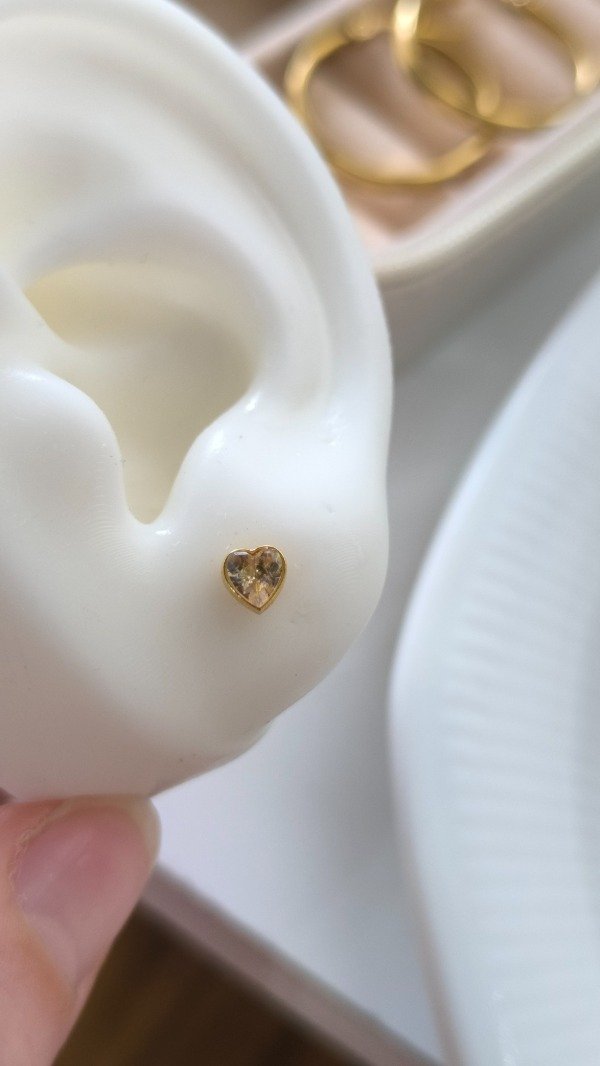 Aros diseño Zirconia forma de Corazón en Acero Dorado 🤍