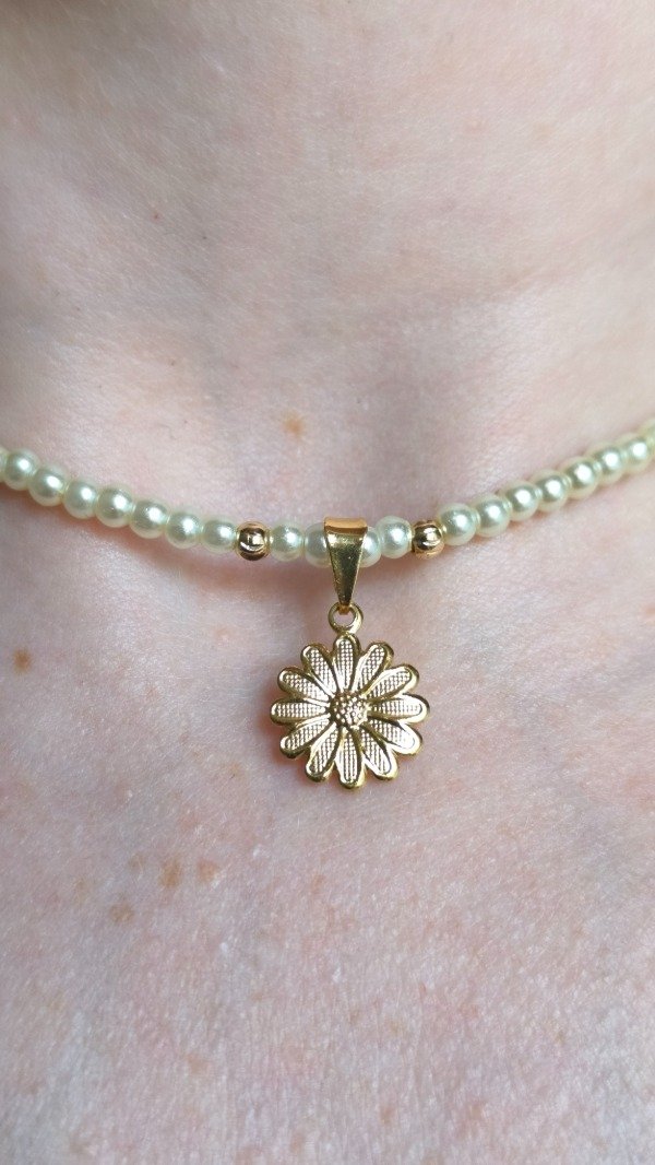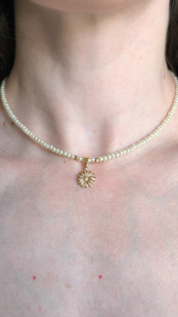 Collar Margarita diseño único Artesanal , con materiales de primera calidad, perlas Premium, dije , separadores y terminales de Oro Laminado 18 k y prolongación en Acero Dorado ✨