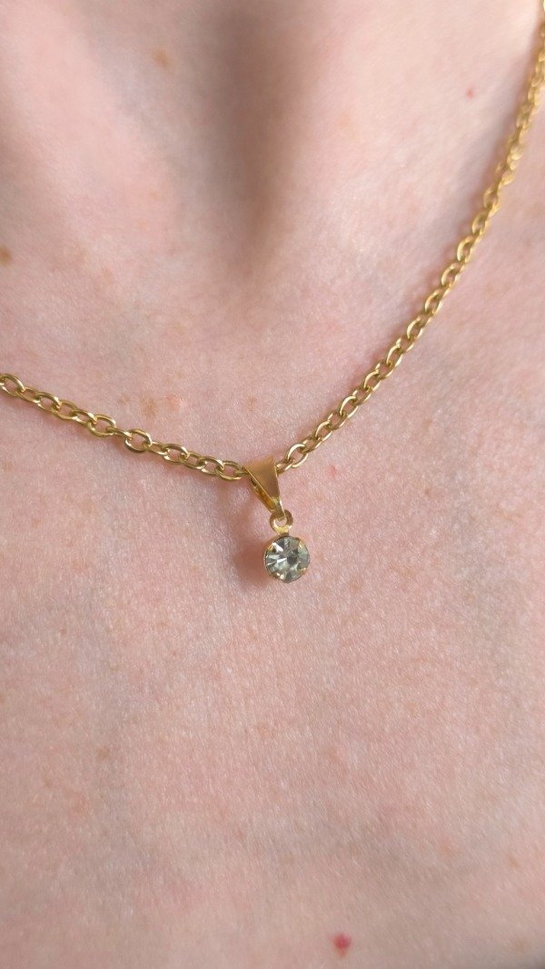 Collar en Acero Dorado, con dije Micro Zircon, muy delicado para sumar un accesorio sutil que no pasa desapercibido.