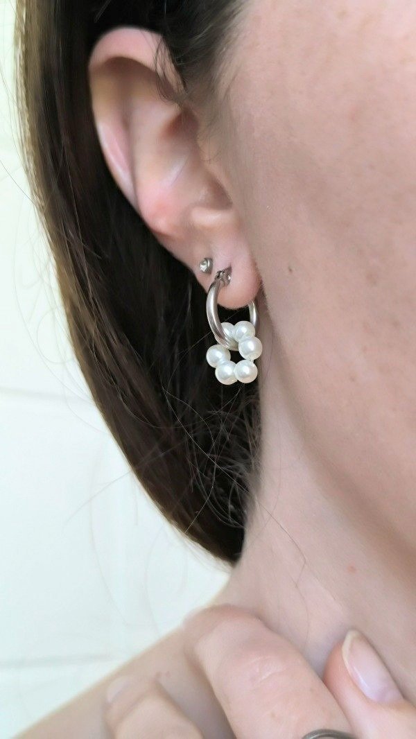 Argollas de Acero Quirúrgico 15 mm con Diseño Artesanal en Perlas Premium ✨