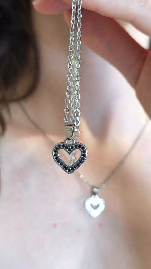 Collar Diseño en Acero Quirúrgico corazón con Micro strass variedad de colores, Negro, Rosa y Tornasol con cadena de 45 cm de largo, perfecta combinación delicada para sumar a un Mix de collares 🌸