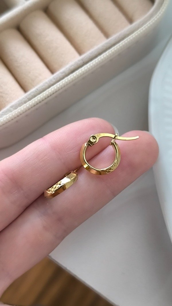 Argolla diseño en Acero Dorado con textura, super delicadas con un tamaño de 10 mm ideales para todos los días, trabajo, Facu, salidas con amigas 🌸